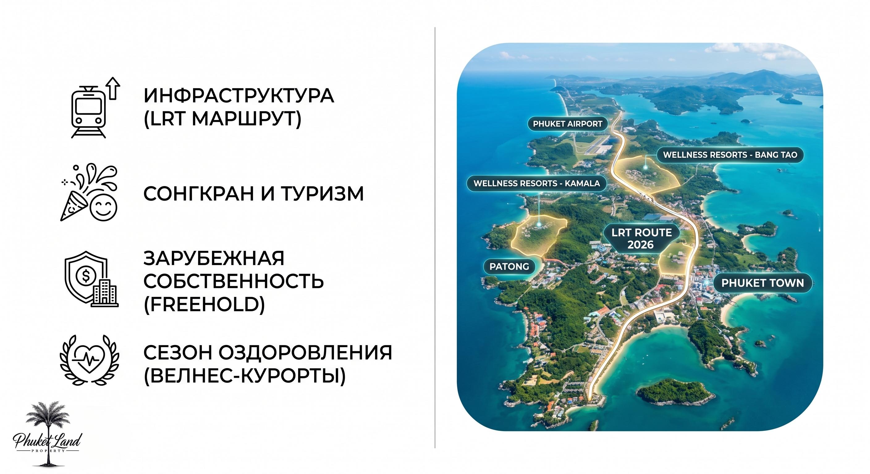 Приветствуем вас, эта неделя запомнилась важными шагами в развитии транспортной инфраструктуры, яркими культурными событиями и активным интересом инвесторов к премиальному сегменту недвижимости. Развитие инфраструктуры: В центре внимания ЛРТ и Аэропорт Главной новостью недели стало подтверждение графика строительства первой фазы Пхукетского ЛРТ. Правительство Таиланда выделило дополнительное финансирование для ускорения реализации проекта, который свяжет международный аэропорт с Чалонгом к 2029 году. Этот шаг напрямую влияет на капитализацию недвижимости в прибрежных районах. Параллельно с этим, руководство аэропорта Пхукета отчиталось о росте пассажиропотока на 15% по сравнению с аналогичным периодом прошлого года, что подчеркивает устойчивое восстановление туристического сектора и долгосрочный спрос на аренду. Культура и туризм: Сонгкран и подготовка к велнес-сезону Остров продолжает наслаждаться атмосферой после прошедшего Сонгкрана. Фестиваль Сонгкран, прошедший на прошлой неделе, привлек на Пхукет рекордное количество туристов, что положительно сказалось на загрузке отелей и краткосрочной аренде апартаментов. Сейчас остров активно готовится к началу сезона велнес-туризма, который традиционно приходится на май. Многие девелоперы, включая Gardens of Eden и Essence Development, анонсировали специальные программы и открытия в своих велнес-центрах, стремясь удовлетворить растущий спрос на оздоровительный отдых. Недвижимость и Инвестиции: Спрос на Foreign Freehold и Камалу В секторе недвижимости мы наблюдаем сохранение высокого спроса на объекты с Foreign Freehold (полное право собственности для иностранцев). Инвесторы проявляют особый интерес к строящимся кондоминиумам премиум-класса в районах Банг Тао и Камала, где дефицит земли продолжает подталкивать цены вверх. На этой неделе мы в Phuket Land Property зафиксировали несколько крупных сделок по покупке юнитов на пресейл-этапах, что подтверждает уверенность рынка в долгосрочном росте стоимости.