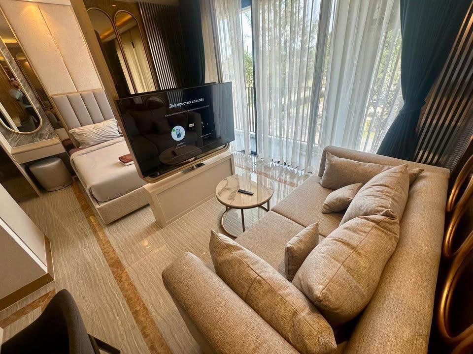 Локация: Bang Tao (Пхукет) Стоимость: низкий сезон от 30 000 THB/мес высокий сезон от 70 000 THB/мес Площадь: 35 м² Комиссия Phuket Land: от 3 000 THB Описание объекта Современные апартаменты в абсолютно новом жилом комплексе Bellevue Lagoon Phuket, расположенном в престижном районе Банг Тао. Планировка площадью 35 м² включает отдельную спальню, уютную кухню-гостиную с большим диваном и балкон с видом на сад или бассейн. Квартира полностью меблирована и оснащена всей необходимой бытовой техникой, включая стиральную машину и кондиционеры. Интерьер выполнен в современном стиле, предусмотрены высокоскоростной Wi-Fi и ТВ, что делает этот объект отличным выбором как для отдыха, так и для удаленной работы. Условия проживания * Планировка: спальня, кухня-гостиная, балкон. * Оснащение: стиральная машина, большой диван, кондиционеры, Wi-Fi. * Депозит: от 15 000 THB. * Дополнительно: оплата электроэнергии и воды по счетчикам. Инфраструктура и сервис Комплекс предлагает резидентам инфраструктуру премиального уровня: * Несколько бассейнов и благоустроенные зоны отдыха. * Ресторан, бар и лаунж-зона на территории. * Современный тренажерный зал, сауна и детская комната. * Библиотека и коворкинг (зона для работы). * Ресепшен, паркинг и круглосуточная охрана. * Бесплатный шаттл-бас до пляжей. Локация и окружение Резиденция находится всего в 5 минутах езды от пляжа Банг Тао. В непосредственной близости расположены главные инфраструктурные объекты острова: торговые центры Boat Avenue и Porto de Phuket, популярные супермаркеты, рестораны и уютные кафе. Удобное расположение позволяет сочетать спокойный отдых с доступом ко всем городским удобствам. Контактная информация Для подбора лучших вариантов, уточнения наличия на ваши даты или записи на просмотр свяжитесь с нами удобным способом: * Telegram: @PhuLand * WhatsApp: https://wa.me/+66816322343 * VK: vk.com/phuket_land