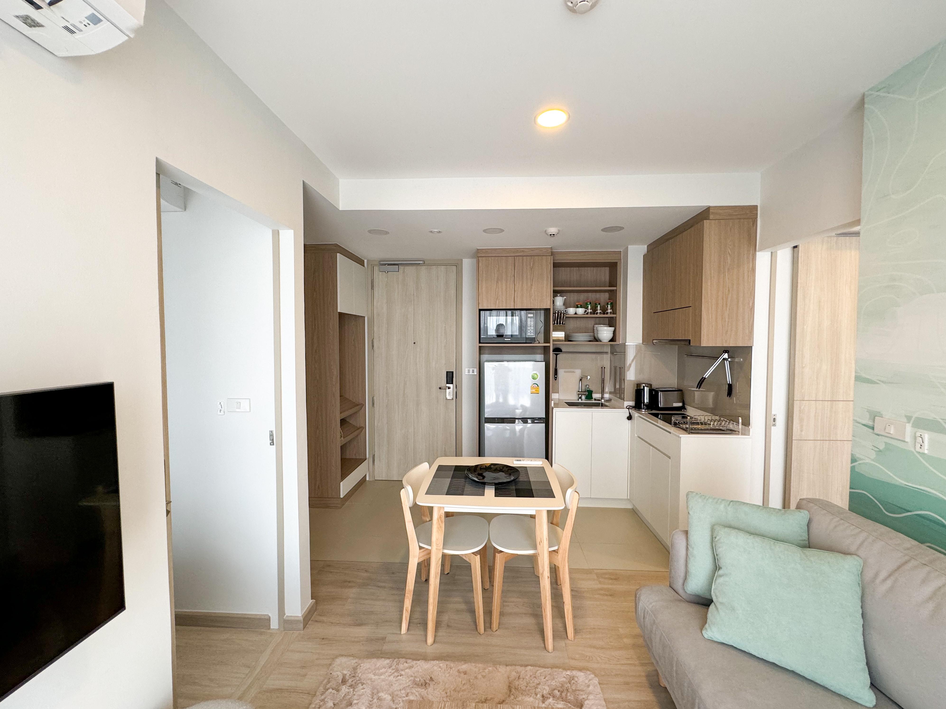 Локация: Laguna, Bang Tao (Пхукет) Стоимость: низкий сезон от 50 000 THB/мес высокий сезон от 160 000 THB/мес Площадь: 52 кв.м Комиссия Phuket Land: от 3 000 THB Описание объекта Предлагаем в аренду новые апартаменты с двумя спальнями в фазе Aurora — самом современном дополнении знаменитого комплекса Skypark. Квартира отличается увеличенной площадью и продуманной планировкой, которая идеально подходит для семейного отдыха. Светлые комнаты, качественная отделка и современная мебель создают атмосферу премиального уюта. Жилье полностью укомплектовано для комфортной жизни: просторная гостиная, обеденная зона, функциональная кухня и балкон с видом на тропическую зелень или внутреннюю инфраструктуру курорта. Здесь вы сможете наслаждаться всеми привилегиями жизни в закрытом элитном сообществе Laguna Phuket. Условия проживания Планировка: 2 отдельные спальни, гостиная, кухня, ванные комнаты. Оснащение: кондиционеры в каждой комнате, стиральная машина, современная бытовая техника, Smart TV. Дополнительно: оплата электроэнергии и воды по счетчикам. Инфраструктура и сервис Skypark Aurora предлагает резидентам доступ к уникальным удобствам: Панорамные бассейны на крыше с зонами для отдыха. Прогулочные дорожки, соединяющие крыши зданий комплекса. Современный тренажерный зал и площадки для йоги. Круглосуточная охрана, видеонаблюдение и ресепшен. Бесплатный шаттл-бас и водный трамвайчик по всей территории Лагуны до пляжа и Boat Avenue. Локация и окружение Комплекс находится в самом сердце Laguna Phuket, всего в 10 минутах пешком или паре минут на шаттле до пляжа Банг Тао. В шаговой доступности расположены лучшие рестораны, бич-клабы, гольф-поля и торговые центры Boat Avenue и Porto de Phuket. Это самый безопасный и благоустроенный район острова с неповторимой атмосферой курорта мирового класса. Контактная информация Для подбора лучших варианто