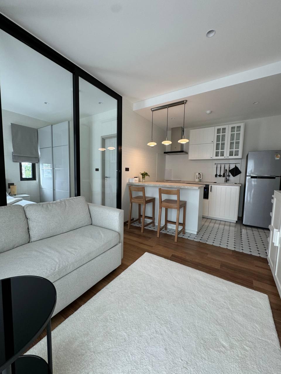Локация: Nai Yang (Пхукет) Площадь: 35 м² Стоимость: низкий сезон от 30 000 THB/мес высокий сезон от 55 000 THB/мес Комиссия Phuket Land: по запросу Описание объекта Стильная квартира-студия в современном жилом комплексе The Title Halo Condominium, расположенном в северной части острова. Продуманная и функциональная планировка включает в себя жилую зону, совмещенную с кухонным уголком, и балкон с приятным видом на внутреннюю территорию комплекса. Апартаменты отличаются свежим ремонтом и качественной отделкой. Квартира полностью укомплектована для жизни: установлена современная система кондиционирования, есть телевизор, стиральная машина и необходимая кухонная техника. Наличие раскладного дивана позволяет организовать дополнительные спальные места. Условия проживания * Планировка: студия с выделенной кухонной зоной. * Оснащение: кондиционер, раскладной диван, оборудованная кухня, ТВ. * Дополнительно: оплата электроэнергии и воды по счетчикам (при долгосрочной аренде). Инфраструктура и сервис Комплекс The Title Halo предлагает резидентам высокий уровень комфорта: * Несколько плавательных бассейнов. * Современный тренажерный зал. * Благоустроенные зеленые зоны для прогулок и отдыха. * Крытая парковка для автомобилей и байков. * Система контроля доступа и круглосуточная охрана 24/7. Локация и окружение Объект находится в превосходной локации — всего 5–7 минут спокойным шагом до живописного пляжа Найянг. В непосредственной близости расположены многочисленные кафе, локальные рынки и магазины. Район Найянг ценится за свою спокойную атмосферу и близость к национальному парку Сиринат, при этом дорога до аэропорта занимает не более 5-10 минут. Контактная информация Для подбора лучших вариантов, уточнения наличия на ваши даты или записи на просмотр свяжитесь с нами удобным способом: * Telegram: @PhuLand * WhatsApp: https://wa.me/+66816322343 * VK: vk.com/phuket_land