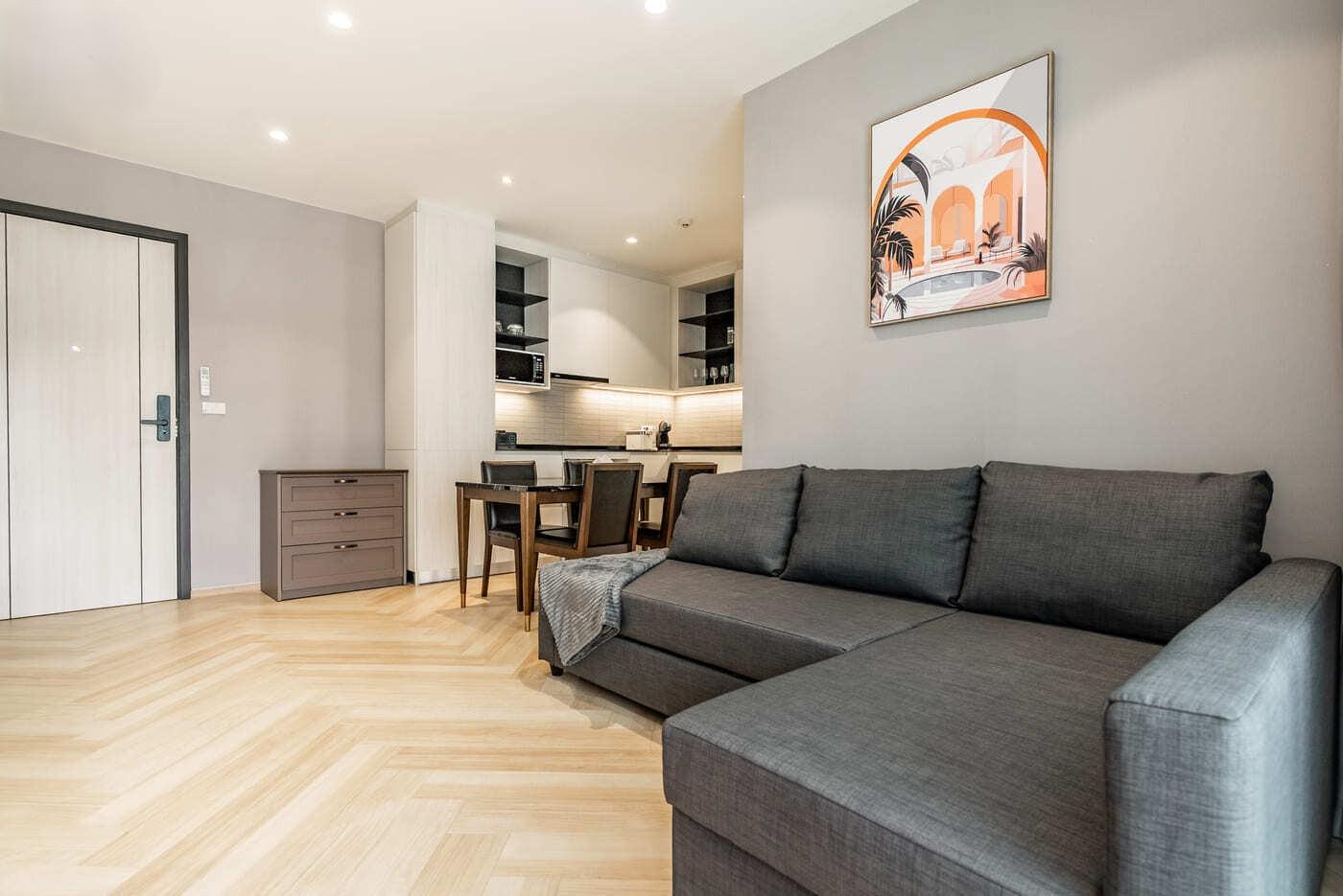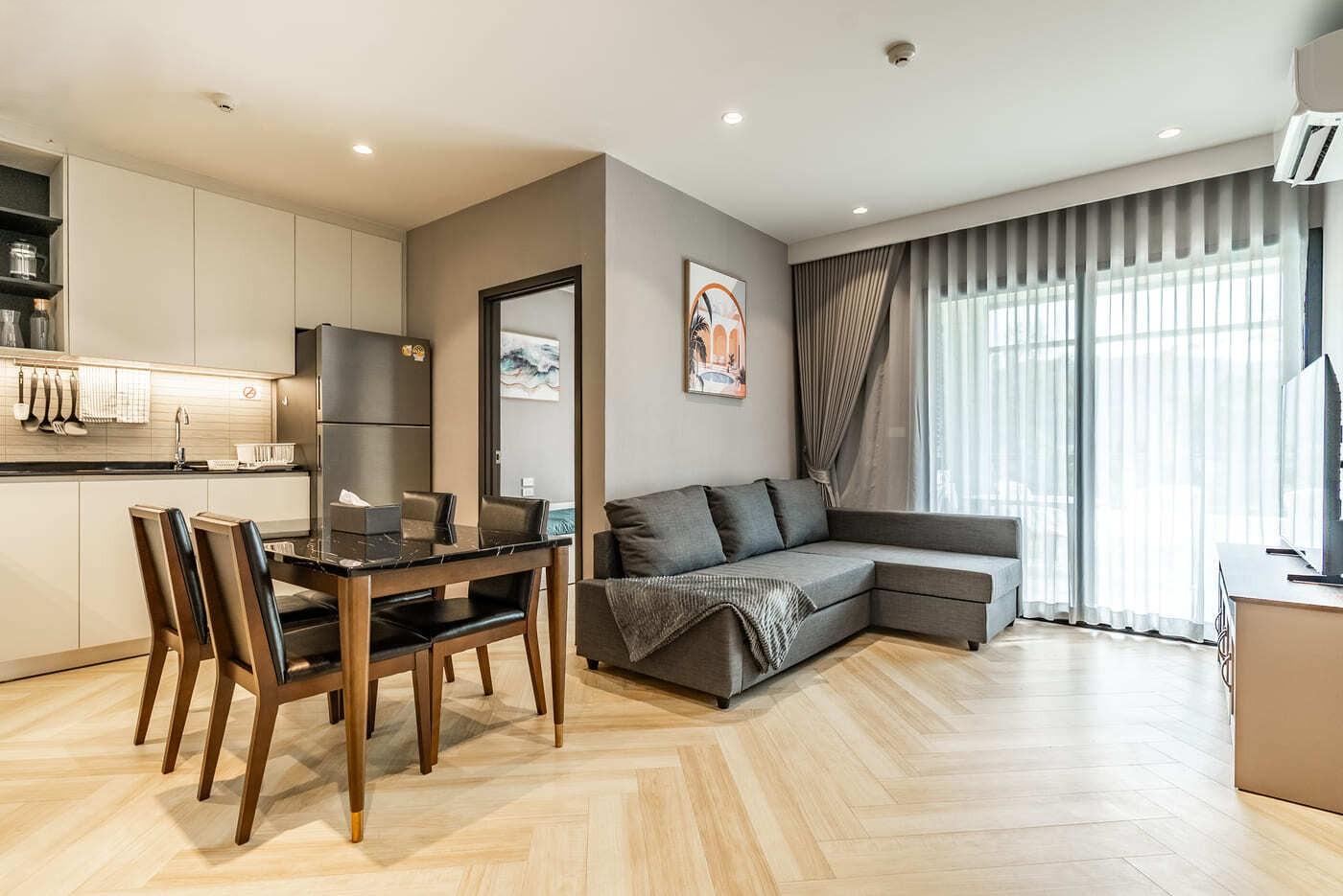Локация: Bang Tao (Пхукет) Стоимость: Низкий сезон от 55 000 ТНВ/мес Высокий сезон от 160 000 THB/мес Площадь: 55 м² Комиссия Phuket Land: 5 000 THB Описание объекта Современные апартаменты в новом жилом комплексе премиум-класса The Title Legendary. Квартира площадью 55 м² имеет продуманную планировку, которая позволяет комфортно разместиться семье из 4-5 человек. Интерьер выполнен в светлых тонах с качественной отделкой, создающей атмосферу уюта и современного комфорта. Пространство включает в себя две отдельные спальни, светлую гостиную с раскладным диваном и функциональную кухню открытой планировки. С балкона открывается приятный вид на тропическую зелень, что делает отдых еще более приватным и спокойным. Условия проживания Планировка: 2 спальни, гостиная с раскладным диваном, кухня, балкон. Оснащение: кондиционеры, современная мебель, бытовая техника, кухонный инвентарь. Особенности: отличный вариант как для короткого отпуска, так и для длительного проживания в зимний период. Инфраструктура и сервис The Title Legendary предлагает резидентам масштабную инфраструктуру: Несколько плавательных бассейнов на территории. Современный фитнес-центр. Лаунж-зоны для отдыха и прогулочные дорожки. Круглосуточная охрана 24/7 и видеонаблюдение. Просторная парковка. Локация и окружение Комплекс расположен в одной из самых востребованных локаций Пхукета — районе Банг Тао. Пляж находится в пешей доступности. В непосредственной близости расположены главные центры притяжения острова: торговые галереи Boat Avenue и Porto de Phuket, многочисленные кафе, рестораны международной кухни и супермаркеты с европейскими товарами. Контактная информация Для подбора лучших вариантов, уточнения наличия на ваши даты или записи на просмотр свяжитесь с нами удобным способом: Telegram: @PhuLand WhatsApp: https://wa.me/+66816322343 VK: vk.com/phuket_land